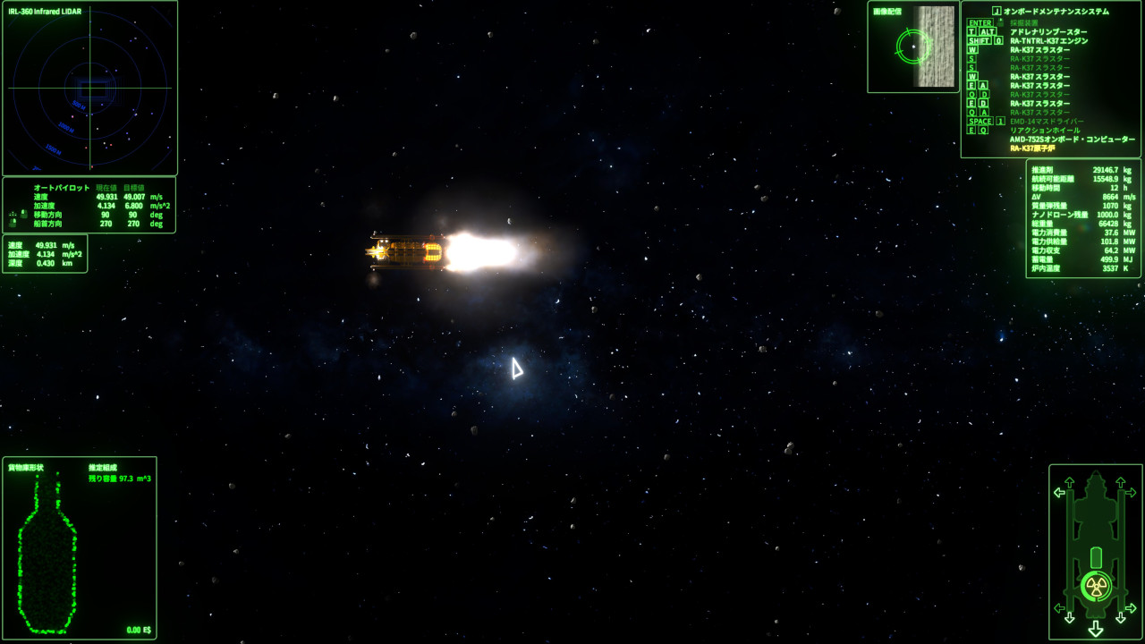 一応ファストトラベルがあって対象の地点へ向かってある程度の加速と距離稼ぐ必要があるが真っ直ぐ飛ぶ必要がある→設定する前にレーダーとかで安全確保しないと隕石に突っ込んで大事故。