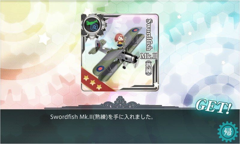 報酬は「九五式爆雷」「Swordfish」「伊良湖 4個」「特注家具職人」「戦闘糧食 2個」。