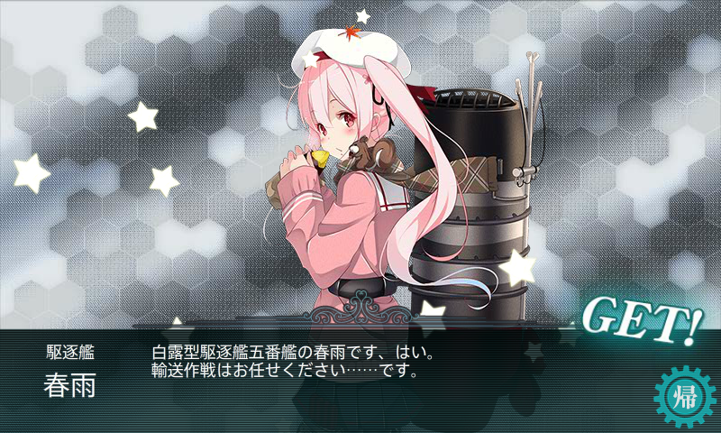 春雨は通常海域では6-3とかいう、まだ行った事も無い海域のドロップらしいのでここでも助かる。